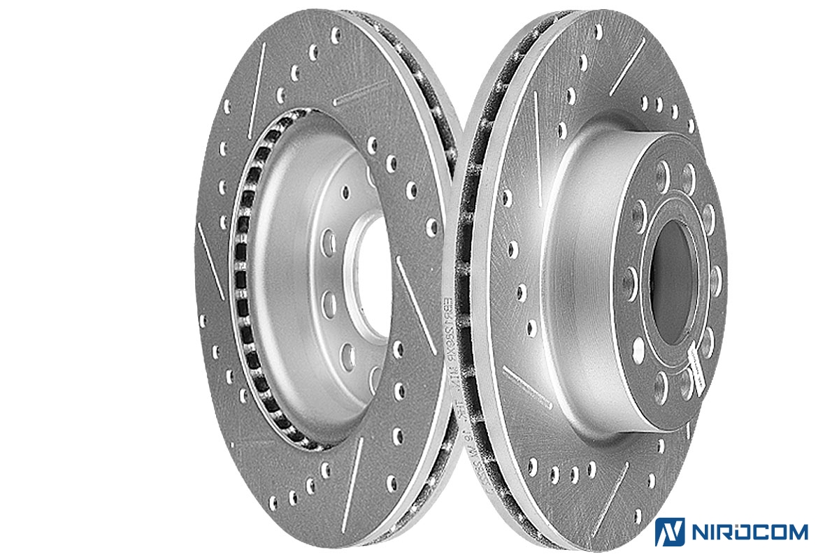 • характеристики тормозных дисков: потенциал рассеивания тепла может по-разному влиять на диски в зависимости от того, вентилированные они или нет, имеется ли перфорация, насечки;