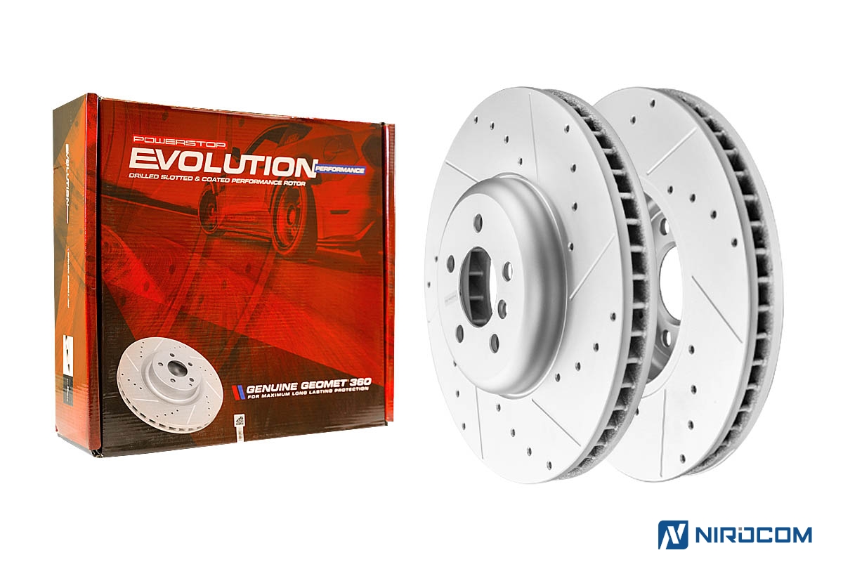 Тормозные диски PowerStop Evolution выполнены из чугуна с повышенным содержанием хрома и никеля. Слоты и перфорация служат как для охлаждения, так и для улучшения коэффициента трения и эффективной работы в различных внешних условиях. Лучшее решение для динамичной и спортивной манеры езды и несравнимая стойкость к перегреву. Все тормозные диски PowerStop Evolution спроектированы в полном соответствии с оригинальными размерами и спецификациями. Прецизионная лазерная чистовая обработка гарантирует их простую и быструю установку, а также безотказную работу на протяжении всего срока службы. Весь тормозной диск, включая внутренние лопасти покрыт запатентованным составом GEOMET® (смесь с использованием дихромата серебра и цинка) которое чрезвычайно стойко к окислению и коррозии, не влияя при этом на эффективность торможения.