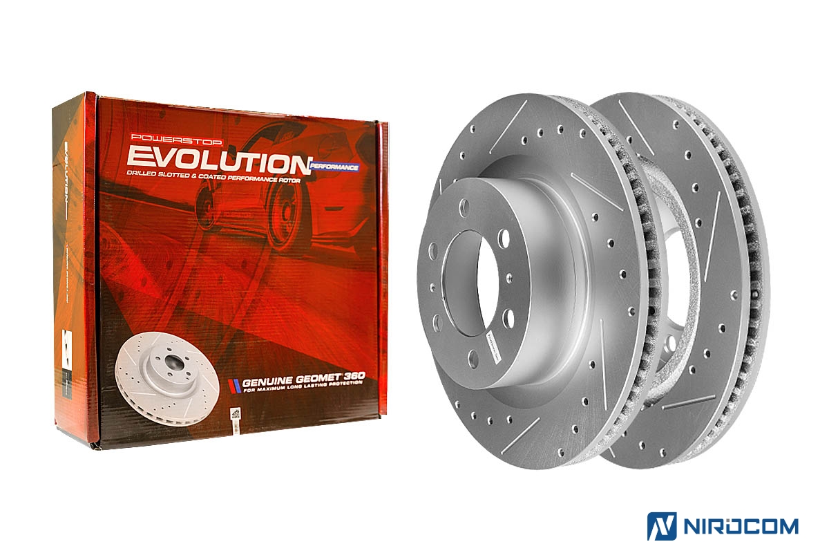 Тормозные диски PowerStop Evolution выполнены из чугуна с повышенным содержанием хрома и никеля. Слоты и перфорация служат как для охлаждения, так и для улучшения коэффициента трения и эффективной работы в различных внешних условиях. Лучшее решение для динамичной и спортивной манеры езды и несравнимая стойкость к перегреву. Все тормозные диски PowerStop Evolution спроектированы в полном соответствии с оригинальными размерами и спецификациями. Прецизионная лазерная чистовая обработка гарантирует их простую и быструю установку, а также безотказную работу на протяжении всего срока службы. Весь тормозной диск, включая внутренние лопасти покрыт запатентованным составом GEOMET® (смесь с использованием дихромата серебра и цинка) которое чрезвычайно стойко к окислению и коррозии, не влияя при этом на эффективность торможения.