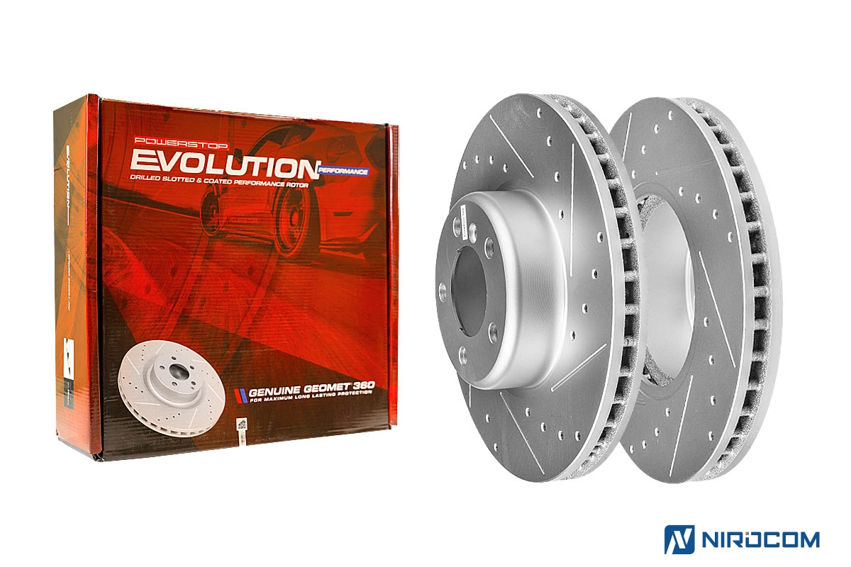 Тормозные диски PowerStop Evolution выполнены из чугуна с повышенным содержанием хрома и никеля. Слоты и перфорация служат как для охлаждения, так и для улучшения коэффициента трения и эффективной работы в различных внешних условиях. Лучшее решение для динамичной и спортивной манеры езды и несравнимая стойкость к перегреву. Все тормозные диски PowerStop Evolution спроектированы в полном соответствии с оригинальными размерами и спецификациями. Прецизионная лазерная чистовая обработка гарантирует их простую и быструю установку, а также безотказную работу на протяжении всего срока службы. Весь тормозной диск, включая внутренние лопасти покрыт запатентованным составом GEOMET® (смесь с использованием дихромата серебра и цинка) которое чрезвычайно стойко к окислению и коррозии, не влияя при этом на эффективность торможения.