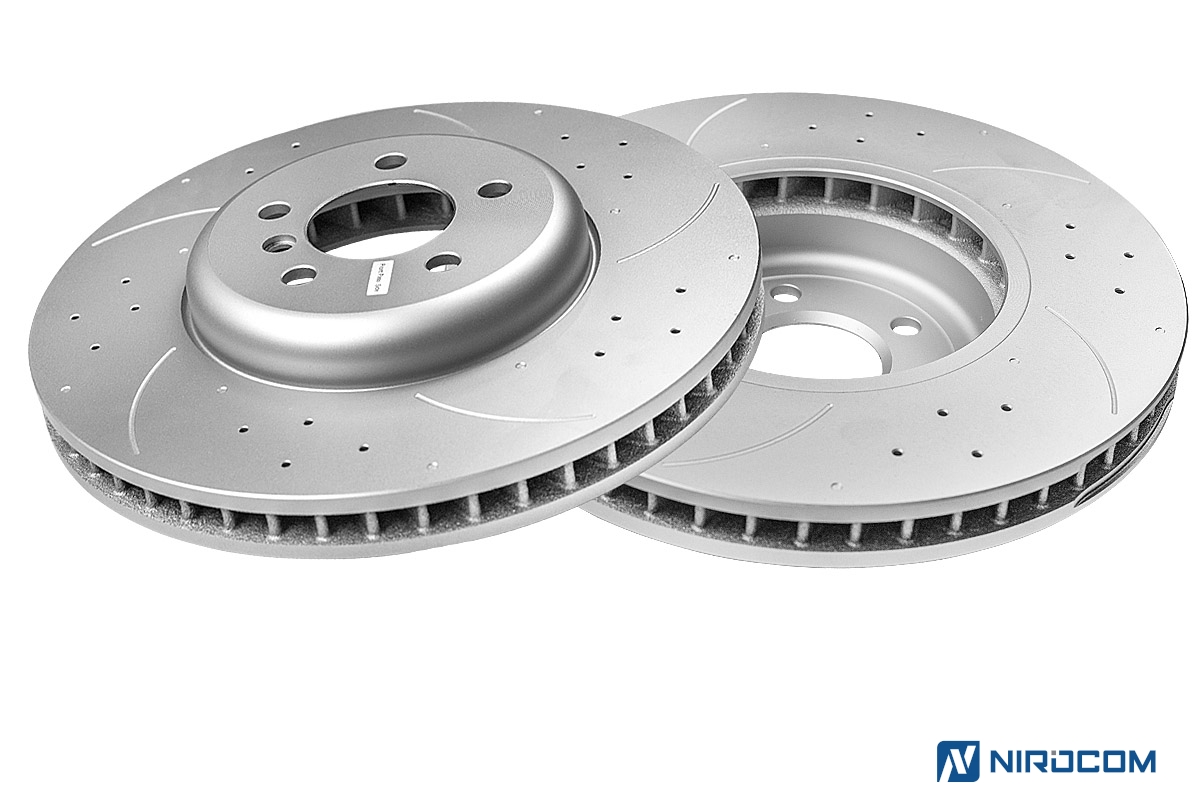 • характеристики тормозных дисков: потенциал рассеивания тепла может по-разному влиять на диски в зависимости от того, вентилированные они или нет, имеется ли перфорация, насечки;