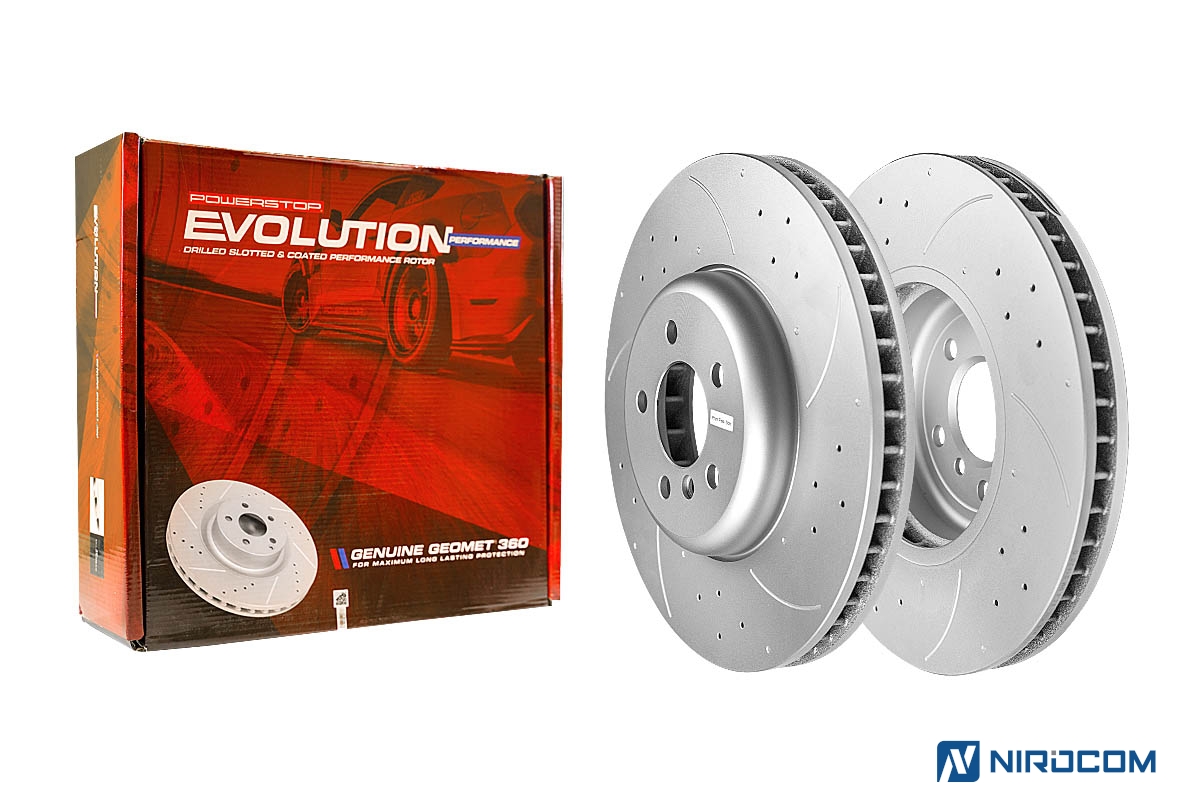Тормозные диски PowerStop Evolution выполнены из чугуна с повышенным содержанием хрома и никеля. Слоты и перфорация служат как для охлаждения, так и для улучшения коэффициента трения и эффективной работы в различных внешних условиях. Лучшее решение для динамичной и спортивной манеры езды и несравнимая стойкость к перегреву. Все тормозные диски PowerStop Evolution спроектированы в полном соответствии с оригинальными размерами и спецификациями. Прецизионная лазерная чистовая обработка гарантирует их простую и быструю установку, а также безотказную работу на протяжении всего срока службы. Весь тормозной диск, включая внутренние лопасти покрыт запатентованным составом GEOMET® (смесь с использованием дихромата серебра и цинка) которое чрезвычайно стойко к окислению и коррозии, не влияя при этом на эффективность торможения.
