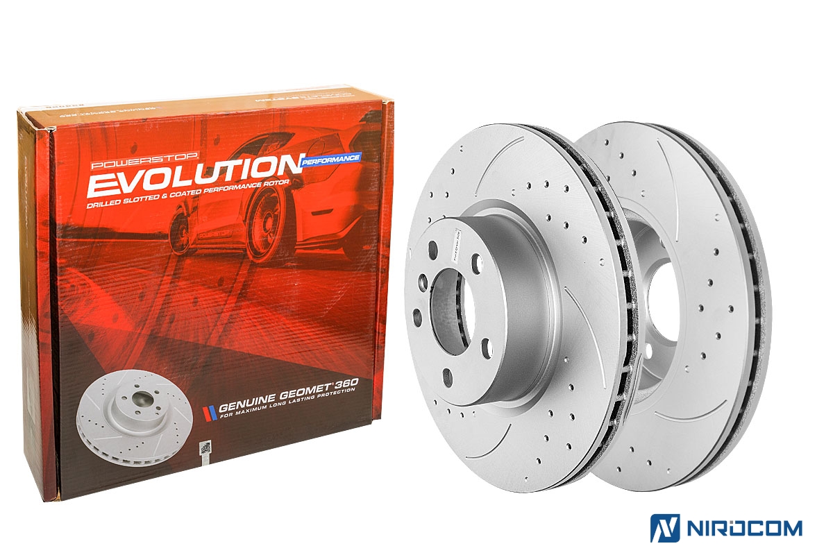Тормозные диски PowerStop Evolution выполнены из чугуна с повышенным содержанием хрома и никеля. Слоты и перфорация служат как для охлаждения, так и для улучшения коэффициента трения и эффективной работы в различных внешних условиях. Лучшее решение для динамичной и спортивной манеры езды и несравнимая стойкость к перегреву. Все тормозные диски PowerStop Evolution спроектированы в полном соответствии с оригинальными размерами и спецификациями. Прецизионная лазерная чистовая обработка гарантирует их простую и быструю установку, а также безотказную работу на протяжении всего срока службы. Весь тормозной диск, включая внутренние лопасти покрыт запатентованным составом GEOMET® (смесь с использованием дихромата серебра и цинка) которое чрезвычайно стойко к окислению и коррозии, не влияя при этом на эффективность торможения.