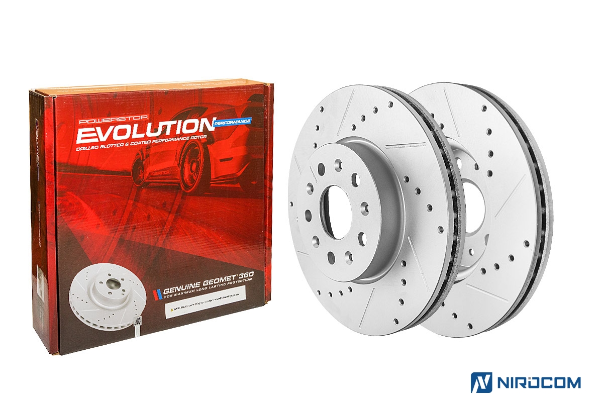 Тормозные диски PowerStop Evolution выполнены из чугуна с повышенным содержанием хрома и никеля. Слоты и перфорация служат как для охлаждения, так и для улучшения коэффициента трения и эффективной работы в различных внешних условиях. Лучшее решение для динамичной и спортивной манеры езды и несравнимая стойкость к перегреву. Все тормозные диски PowerStop Evolution спроектированы в полном соответствии с оригинальными размерами и спецификациями. Прецизионная лазерная чистовая обработка гарантирует их простую и быструю установку, а также безотказную работу на протяжении всего срока службы. Весь тормозной диск, включая внутренние лопасти покрыт запатентованным составом GEOMET® (смесь с использованием дихромата серебра и цинка) которое чрезвычайно стойко к окислению и коррозии, не влияя при этом на эффективность торможения.
