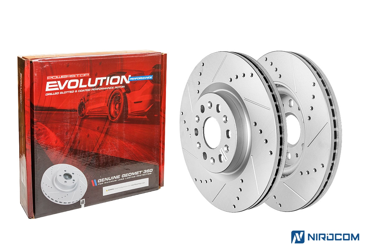 Тормозные диски PowerStop Evolution выполнены из чугуна с повышенным содержанием хрома и никеля. Слоты и перфорация служат как для охлаждения, так и для улучшения коэффициента трения и эффективной работы в различных внешних условиях. Лучшее решение для динамичной и спортивной манеры езды и несравнимая стойкость к перегреву. Все тормозные диски PowerStop Evolution спроектированы в полном соответствии с оригинальными размерами и спецификациями. Прецизионная лазерная чистовая обработка гарантирует их простую и быструю установку, а также безотказную работу на протяжении всего срока службы. Весь тормозной диск, включая внутренние лопасти покрыт запатентованным составом GEOMET® (смесь с использованием дихромата серебра и цинка) которое чрезвычайно стойко к окислению и коррозии, не влияя при этом на эффективность торможения.
