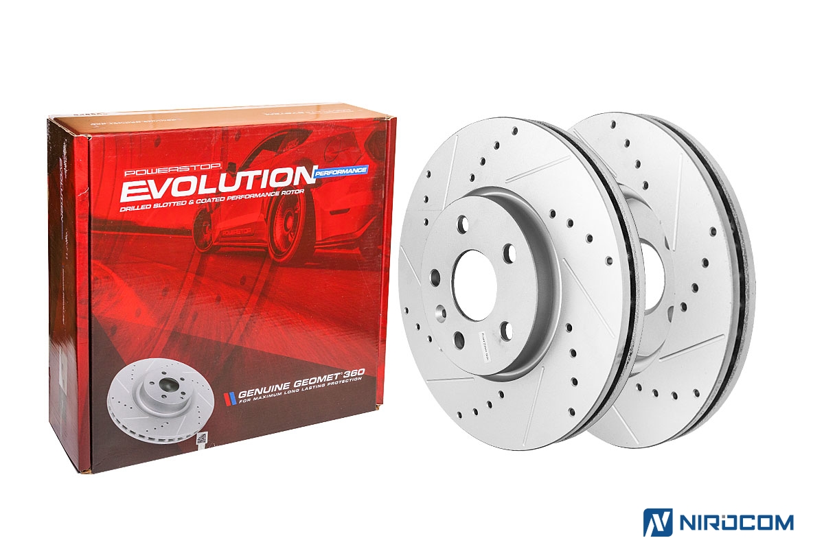 Тормозные диски PowerStop Evolution выполнены из чугуна с повышенным содержанием хрома и никеля. Слоты и перфорация служат как для охлаждения, так и для улучшения коэффициента трения и эффективной работы в различных внешних условиях. Лучшее решение для динамичной и спортивной манеры езды и несравнимая стойкость к перегреву. Все тормозные диски PowerStop Evolution спроектированы в полном соответствии с оригинальными размерами и спецификациями. Прецизионная лазерная чистовая обработка гарантирует их простую и быструю установку, а также безотказную работу на протяжении всего срока службы. Весь тормозной диск, включая внутренние лопасти покрыт запатентованным составом GEOMET® (смесь с использованием дихромата серебра и цинка) которое чрезвычайно стойко к окислению и коррозии, не влияя при этом на эффективность торможения.