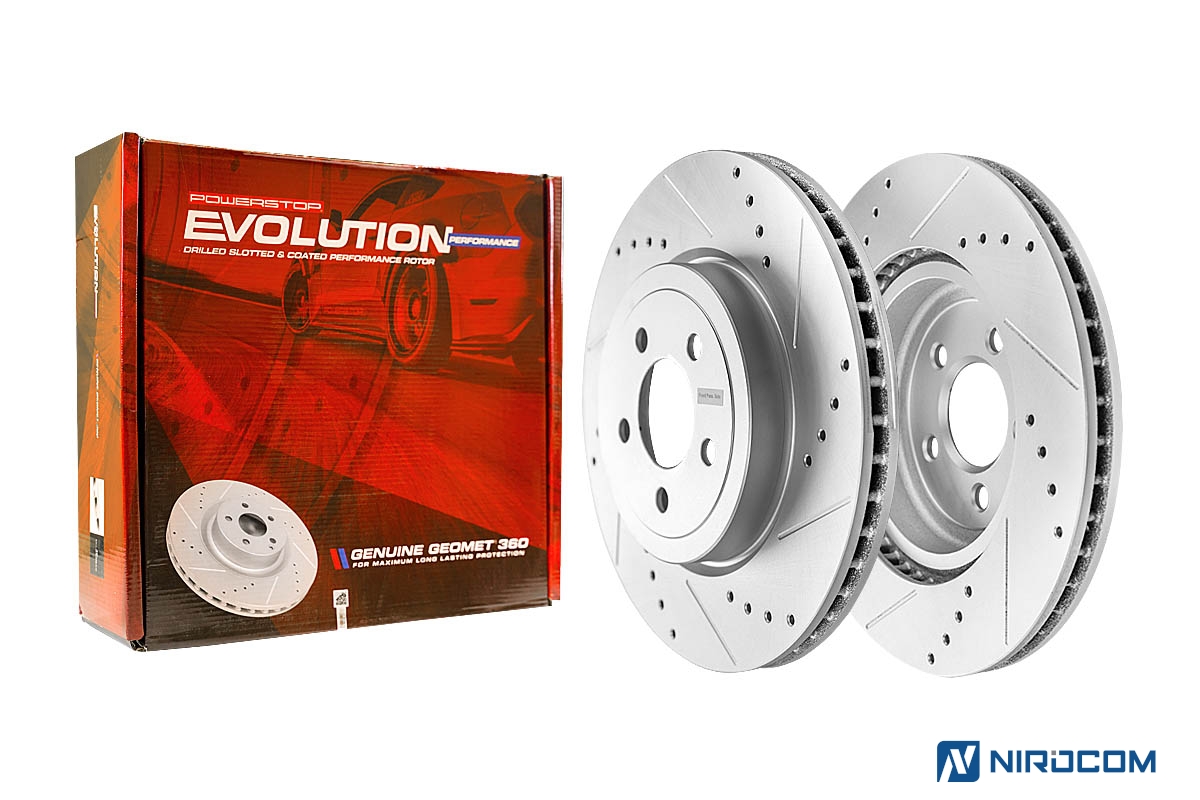 Тормозные диски PowerStop Evolution выполнены из чугуна с повышенным содержанием хрома и никеля. Слоты и перфорация служат как для охлаждения, так и для улучшения коэффициента трения и эффективной работы в различных внешних условиях. Лучшее решение для динамичной и спортивной манеры езды и несравнимая стойкость к перегреву. Все тормозные диски PowerStop Evolution спроектированы в полном соответствии с оригинальными размерами и спецификациями. Прецизионная лазерная чистовая обработка гарантирует их простую и быструю установку, а также безотказную работу на протяжении всего срока службы. Весь тормозной диск, включая внутренние лопасти покрыт запатентованным составом GEOMET® (смесь с использованием дихромата серебра и цинка) которое чрезвычайно стойко к окислению и коррозии, не влияя при этом на эффективность торможения.
