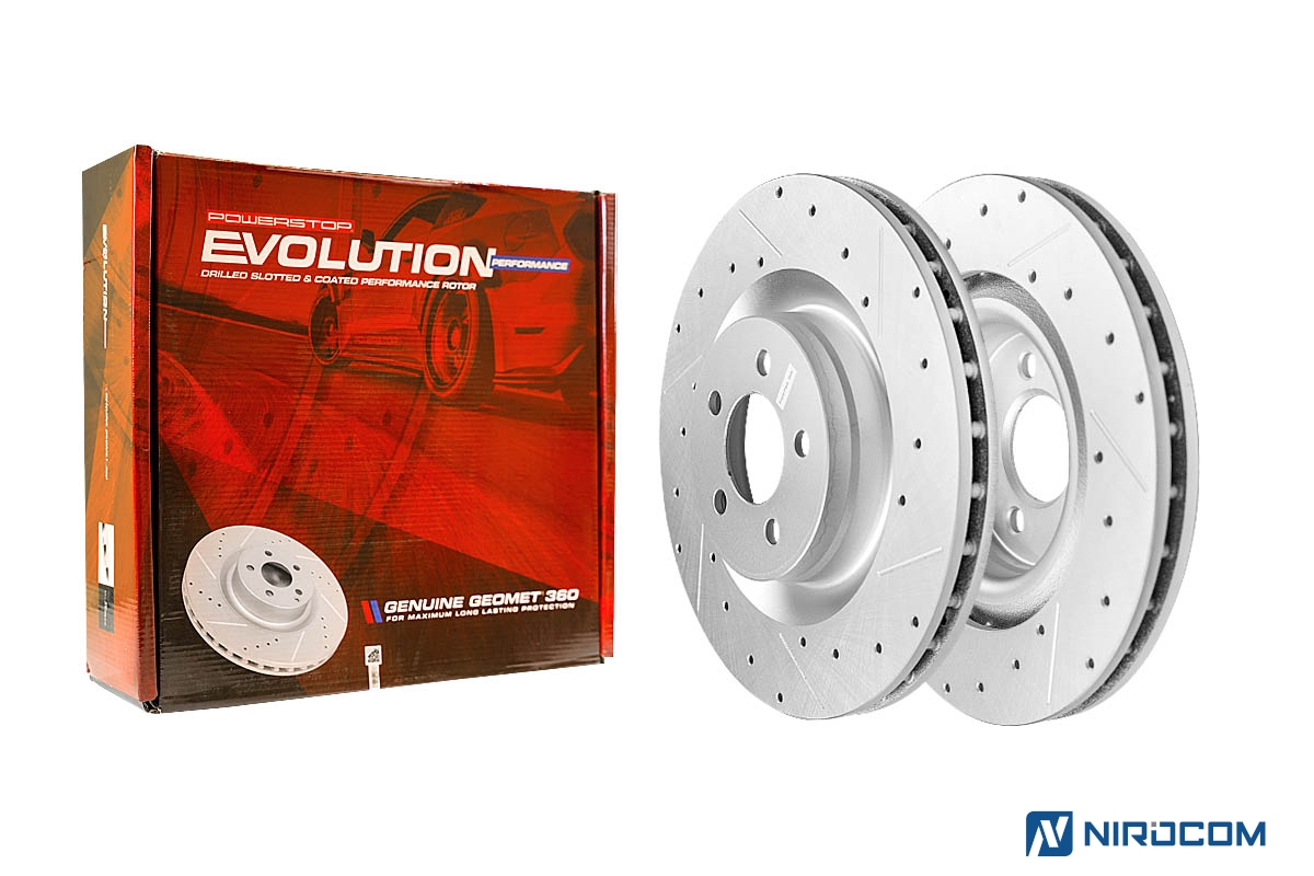 Тормозные диски PowerStop Evolution выполнены из чугуна с повышенным содержанием хрома и никеля. Слоты и перфорация служат как для охлаждения, так и для улучшения коэффициента трения и эффективной работы в различных внешних условиях. Лучшее решение для динамичной и спортивной манеры езды и несравнимая стойкость к перегреву. Все тормозные диски PowerStop Evolution спроектированы в полном соответствии с оригинальными размерами и спецификациями. Прецизионная лазерная чистовая обработка гарантирует их простую и быструю установку, а также безотказную работу на протяжении всего срока службы. Весь тормозной диск, включая внутренние лопасти покрыт запатентованным составом GEOMET® (смесь с использованием дихромата серебра и цинка) которое чрезвычайно стойко к окислению и коррозии, не влияя при этом на эффективность торможения.