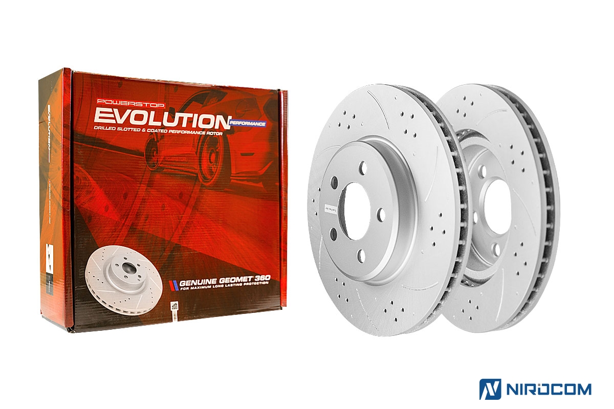 Тормозные диски PowerStop Evolution выполнены из чугуна с повышенным содержанием хрома и никеля. Слоты и перфорация служат как для охлаждения, так и для улучшения коэффициента трения и эффективной работы в различных внешних условиях. Лучшее решение для динамичной и спортивной манеры езды и несравнимая стойкость к перегреву. Все тормозные диски PowerStop Evolution спроектированы в полном соответствии с оригинальными размерами и спецификациями. Прецизионная лазерная чистовая обработка гарантирует их простую и быструю установку, а также безотказную работу на протяжении всего срока службы. Весь тормозной диск, включая внутренние лопасти покрыт запатентованным составом GEOMET® (смесь с использованием дихромата серебра и цинка) которое чрезвычайно стойко к окислению и коррозии, не влияя при этом на эффективность торможения.