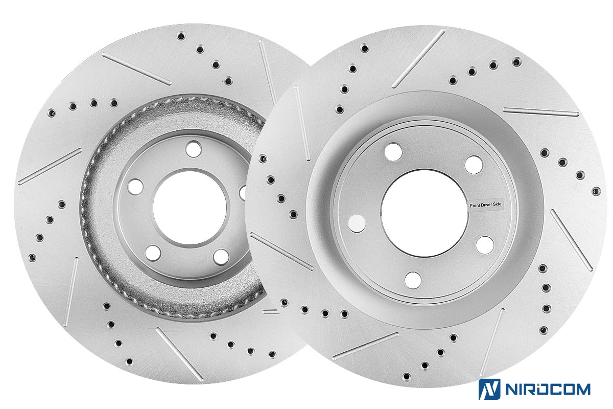 • характеристики тормозных дисков: потенциал рассеивания тепла может по-разному влиять на диски в зависимости от того, вентилированные они или нет, имеется ли перфорация, насечки;