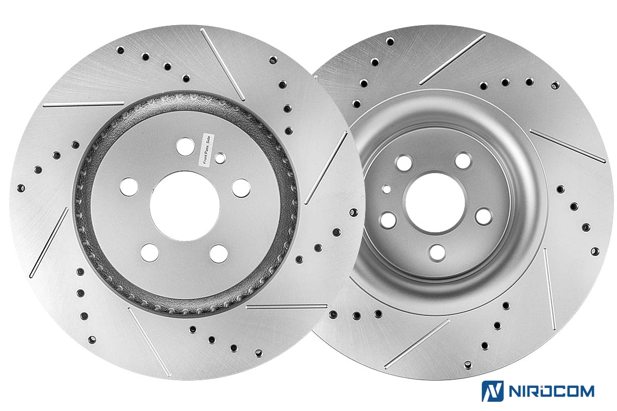 • характеристики тормозных дисков: потенциал рассеивания тепла может по-разному влиять на диски в зависимости от того, вентилированные они или нет, имеется ли перфорация, насечки;