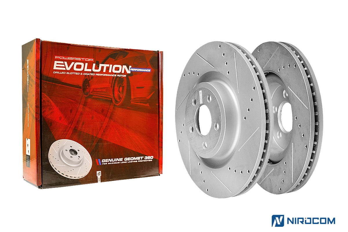 Тормозные диски PowerStop Evolution выполнены из чугуна с повышенным содержанием хрома и никеля. Слоты и перфорация служат как для охлаждения, так и для улучшения коэффициента трения и эффективной работы в различных внешних условиях. Лучшее решение для динамичной и спортивной манеры езды и несравнимая стойкость к перегреву. Все тормозные диски PowerStop Evolution спроектированы в полном соответствии с оригинальными размерами и спецификациями. Прецизионная лазерная чистовая обработка гарантирует их простую и быструю установку, а также безотказную работу на протяжении всего срока службы. Весь тормозной диск, включая внутренние лопасти покрыт запатентованным составом GEOMET® (смесь с использованием дихромата серебра и цинка) которое чрезвычайно стойко к окислению и коррозии, не влияя при этом на эффективность торможения.