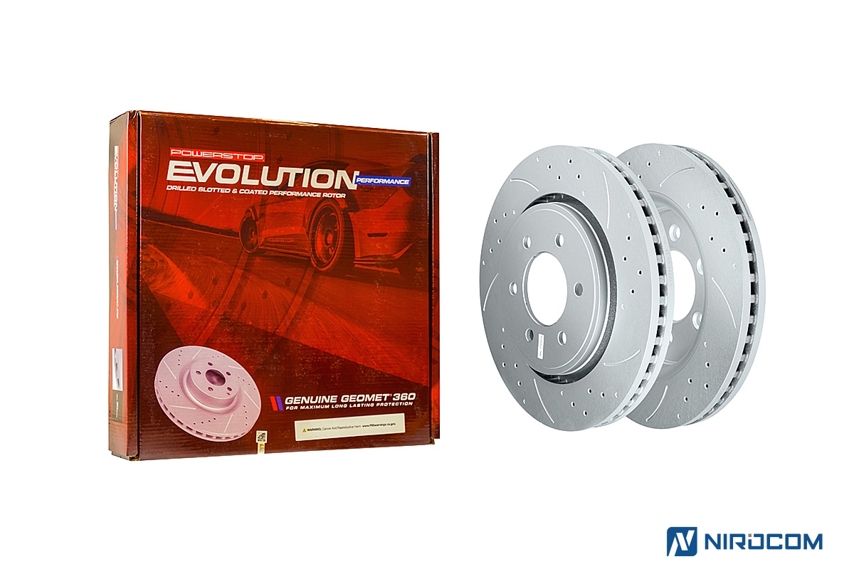 Тормозные диски PowerStop Evolution выполнены из чугуна с повышенным содержанием хрома и никеля. Слоты и перфорация служат как для охлаждения, так и для улучшения коэффициента трения и эффективной работы в различных внешних условиях. Лучшее решение для динамичной и спортивной манеры езды и несравнимая стойкость к перегреву. Все тормозные диски PowerStop Evolution спроектированы в полном соответствии с оригинальными размерами и спецификациями. Прецизионная лазерная чистовая обработка гарантирует их простую и быструю установку, а также безотказную работу на протяжении всего срока службы. Весь тормозной диск, включая внутренние лопасти покрыт запатентованным составом GEOMET® (смесь с использованием дихромата серебра и цинка) которое чрезвычайно стойко к окислению и коррозии, не влияя при этом на эффективность торможения.