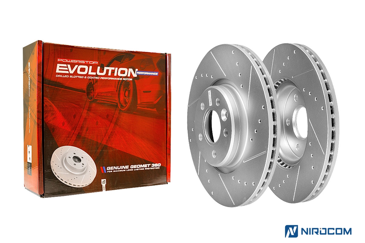 Тормозные диски PowerStop Evolution выполнены из чугуна с повышенным содержанием хрома и никеля. Слоты и перфорация служат как для охлаждения, так и для улучшения коэффициента трения и эффективной работы в различных внешних условиях. Лучшее решение для динамичной и спортивной манеры езды и несравнимая стойкость к перегреву. Все тормозные диски PowerStop Evolution спроектированы в полном соответствии с оригинальными размерами и спецификациями. Прецизионная лазерная чистовая обработка гарантирует их простую и быструю установку, а также безотказную работу на протяжении всего срока службы. Весь тормозной диск, включая внутренние лопасти покрыт запатентованным составом GEOMET® (смесь с использованием дихромата серебра и цинка) которое чрезвычайно стойко к окислению и коррозии, не влияя при этом на эффективность торможения.