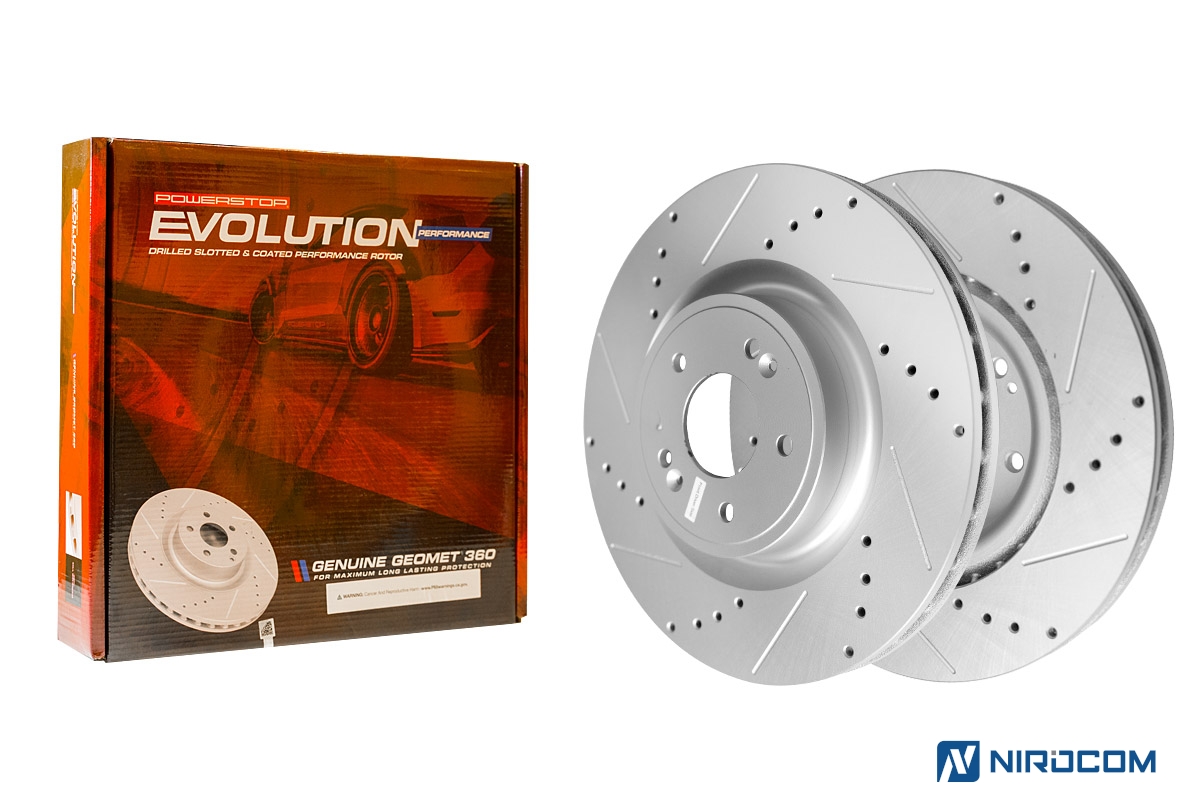 Тормозные диски PowerStop Evolution выполнены из чугуна с повышенным содержанием хрома и никеля. Слоты и перфорация служат как для охлаждения, так и для улучшения коэффициента трения и эффективной работы в различных внешних условиях. Лучшее решение для динамичной и спортивной манеры езды и несравнимая стойкость к перегреву. Все тормозные диски PowerStop Evolution спроектированы в полном соответствии с оригинальными размерами и спецификациями. Прецизионная лазерная чистовая обработка гарантирует их простую и быструю установку, а также безотказную работу на протяжении всего срока службы. Весь тормозной диск, включая внутренние лопасти покрыт запатентованным составом GEOMET® (смесь с использованием дихромата серебра и цинка) которое чрезвычайно стойко к окислению и коррозии, не влияя при этом на эффективность торможения.