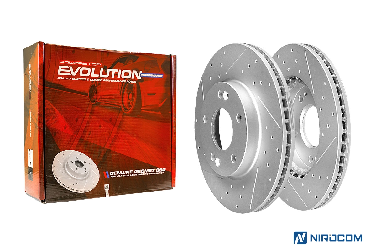 Тормозные диски PowerStop Evolution выполнены из чугуна с повышенным содержанием хрома и никеля. Слоты и перфорация служат как для охлаждения, так и для улучшения коэффициента трения и эффективной работы в различных внешних условиях. Лучшее решение для динамичной и спортивной манеры езды и несравнимая стойкость к перегреву. Все тормозные диски PowerStop Evolution спроектированы в полном соответствии с оригинальными размерами и спецификациями. Прецизионная лазерная чистовая обработка гарантирует их простую и быструю установку, а также безотказную работу на протяжении всего срока службы. Весь тормозной диск, включая внутренние лопасти покрыт запатентованным составом GEOMET® (смесь с использованием дихромата серебра и цинка) которое чрезвычайно стойко к окислению и коррозии, не влияя при этом на эффективность торможения.