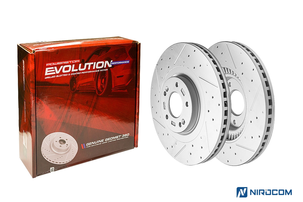 Тормозные диски PowerStop Evolution выполнены из чугуна с повышенным содержанием хрома и никеля. Слоты и перфорация служат как для охлаждения, так и для улучшения коэффициента трения и эффективной работы в различных внешних условиях. Лучшее решение для динамичной и спортивной манеры езды и несравнимая стойкость к перегреву. Все тормозные диски PowerStop Evolution спроектированы в полном соответствии с оригинальными размерами и спецификациями. Прецизионная лазерная чистовая обработка гарантирует их простую и быструю установку, а также безотказную работу на протяжении всего срока службы. Весь тормозной диск, включая внутренние лопасти покрыт запатентованным составом GEOMET® (смесь с использованием дихромата серебра и цинка) которое чрезвычайно стойко к окислению и коррозии, не влияя при этом на эффективность торможения.