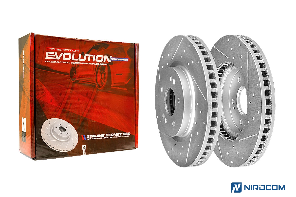 Тормозные диски PowerStop Evolution выполнены из чугуна с повышенным содержанием хрома и никеля. Слоты и перфорация служат как для охлаждения, так и для улучшения коэффициента трения и эффективной работы в различных внешних условиях. Лучшее решение для динамичной и спортивной манеры езды и несравнимая стойкость к перегреву. Все тормозные диски PowerStop Evolution спроектированы в полном соответствии с оригинальными размерами и спецификациями. Прецизионная лазерная чистовая обработка гарантирует их простую и быструю установку, а также безотказную работу на протяжении всего срока службы. Весь тормозной диск, включая внутренние лопасти покрыт запатентованным составом GEOMET® (смесь с использованием дихромата серебра и цинка) которое чрезвычайно стойко к окислению и коррозии, не влияя при этом на эффективность торможения.