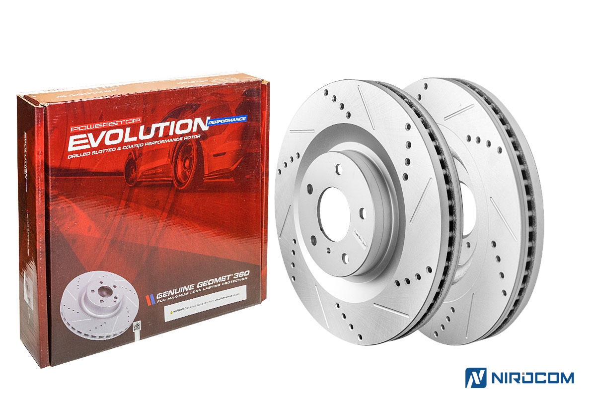 Тормозные диски PowerStop Evolution выполнены из чугуна с повышенным содержанием хрома и никеля. Слоты и перфорация служат как для охлаждения, так и для улучшения коэффициента трения и эффективной работы в различных внешних условиях. Лучшее решение для динамичной и спортивной манеры езды и несравнимая стойкость к перегреву. Все тормозные диски PowerStop Evolution спроектированы в полном соответствии с оригинальными размерами и спецификациями. Прецизионная лазерная чистовая обработка гарантирует их простую и быструю установку, а также безотказную работу на протяжении всего срока службы. Весь тормозной диск, включая внутренние лопасти покрыт запатентованным составом GEOMET® (смесь с использованием дихромата серебра и цинка) которое чрезвычайно стойко к окислению и коррозии, не влияя при этом на эффективность торможения.