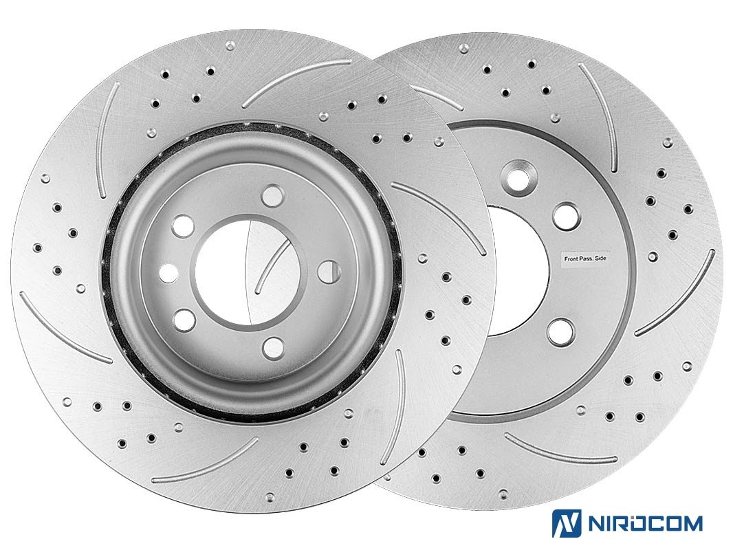 • характеристики тормозных дисков: потенциал рассеивания тепла может по-разному влиять на диски в зависимости от того, вентилированные они или нет, имеется ли перфорация, насечки;