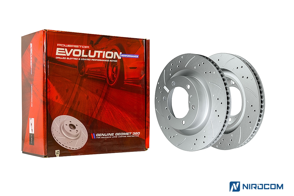 Тормозные диски PowerStop Evolution выполнены из чугуна с повышенным содержанием хрома и никеля. Слоты и перфорация служат как для охлаждения, так и для улучшения коэффициента трения и эффективной работы в различных внешних условиях. Лучшее решение для динамичной и спортивной манеры езды и несравнимая стойкость к перегреву. Все тормозные диски PowerStop Evolution спроектированы в полном соответствии с оригинальными размерами и спецификациями. Прецизионная лазерная чистовая обработка гарантирует их простую и быструю установку, а также безотказную работу на протяжении всего срока службы. Весь тормозной диск, включая внутренние лопасти покрыт запатентованным составом GEOMET® (смесь с использованием дихромата серебра и цинка) которое чрезвычайно стойко к окислению и коррозии, не влияя при этом на эффективность торможения.