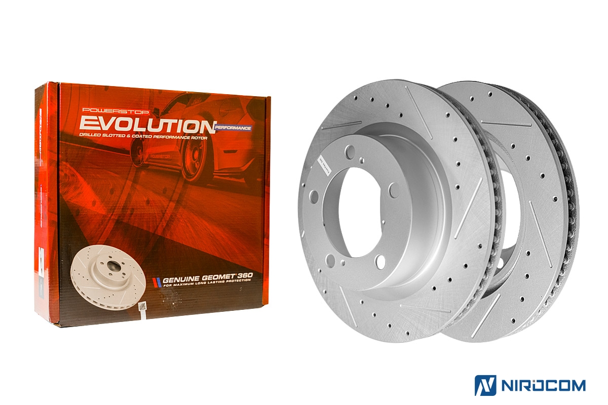 Тормозные диски PowerStop Evolution выполнены из чугуна с повышенным содержанием хрома и никеля. Слоты и перфорация служат как для охлаждения, так и для улучшения коэффициента трения и эффективной работы в различных внешних условиях. Лучшее решение для динамичной и спортивной манеры езды и несравнимая стойкость к перегреву. Все тормозные диски PowerStop Evolution спроектированы в полном соответствии с оригинальными размерами и спецификациями. Прецизионная лазерная чистовая обработка гарантирует их простую и быструю установку, а также безотказную работу на протяжении всего срока службы. Весь тормозной диск, включая внутренние лопасти покрыт запатентованным составом GEOMET® (смесь с использованием дихромата серебра и цинка) которое чрезвычайно стойко к окислению и коррозии, не влияя при этом на эффективность торможения.
