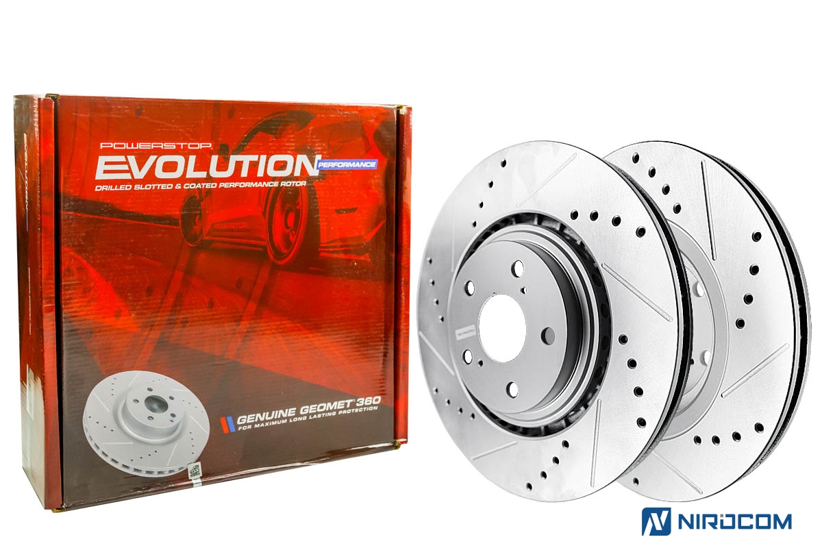 Тормозные диски PowerStop Evolution выполнены из чугуна с повышенным содержанием хрома и никеля. Слоты и перфорация служат как для охлаждения, так и для улучшения коэффициента трения и эффективной работы в различных внешних условиях. Лучшее решение для динамичной и спортивной манеры езды и несравнимая стойкость к перегреву. Все тормозные диски PowerStop Evolution спроектированы в полном соответствии с оригинальными размерами и спецификациями. Прецизионная лазерная чистовая обработка гарантирует их простую и быструю установку, а также безотказную работу на протяжении всего срока службы. Весь тормозной диск, включая внутренние лопасти покрыт запатентованным составом GEOMET® (смесь с использованием дихромата серебра и цинка) которое чрезвычайно стойко к окислению и коррозии, не влияя при этом на эффективность торможения.