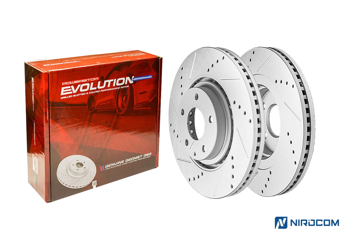 Тормозные диски PowerStop Evolution выполнены из чугуна с повышенным содержанием хрома и никеля. Слоты и перфорация служат как для охлаждения, так и для улучшения коэффициента трения и эффективной работы в различных внешних условиях. Лучшее решение для динамичной и спортивной манеры езды и несравнимая стойкость к перегреву. Все тормозные диски PowerStop Evolution спроектированы в полном соответствии с оригинальными размерами и спецификациями. Прецизионная лазерная чистовая обработка гарантирует их простую и быструю установку, а также безотказную работу на протяжении всего срока службы. Весь тормозной диск, включая внутренние лопасти покрыт запатентованным составом GEOMET® (смесь с использованием дихромата серебра и цинка) которое чрезвычайно стойко к окислению и коррозии, не влияя при этом на эффективность торможения.