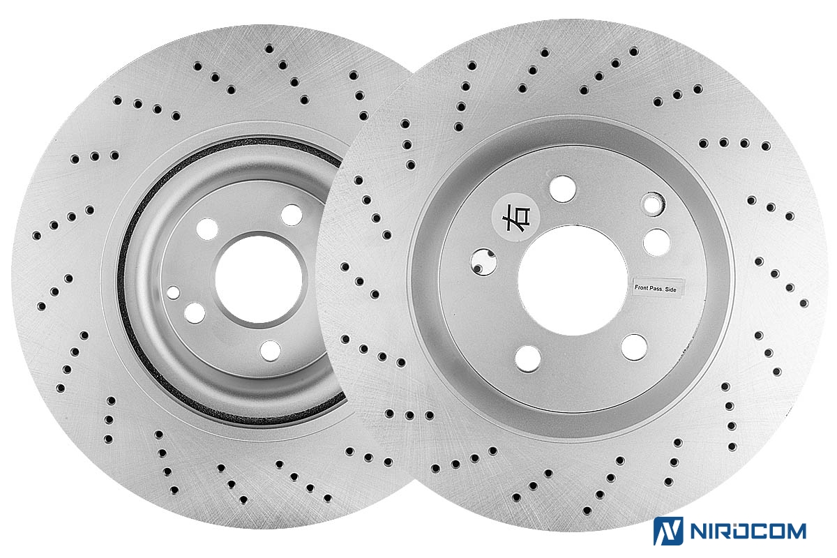 • характеристики тормозных дисков: потенциал рассеивания тепла может по-разному влиять на диски в зависимости от того, вентилированные они или нет, имеется ли перфорация, насечки;
