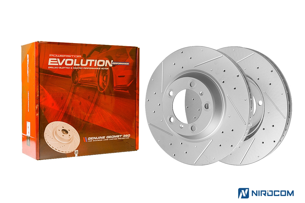 Тормозные диски PowerStop Evolution выполнены из чугуна с повышенным содержанием хрома и никеля. Слоты и перфорация служат как для охлаждения, так и для улучшения коэффициента трения и эффективной работы в различных внешних условиях. Лучшее решение для динамичной и спортивной манеры езды и несравнимая стойкость к перегреву. Все тормозные диски PowerStop Evolution спроектированы в полном соответствии с оригинальными размерами и спецификациями. Прецизионная лазерная чистовая обработка гарантирует их простую и быструю установку, а также безотказную работу на протяжении всего срока службы. Весь тормозной диск, включая внутренние лопасти покрыт запатентованным составом GEOMET® (смесь с использованием дихромата серебра и цинка) которое чрезвычайно стойко к окислению и коррозии, не влияя при этом на эффективность торможения.