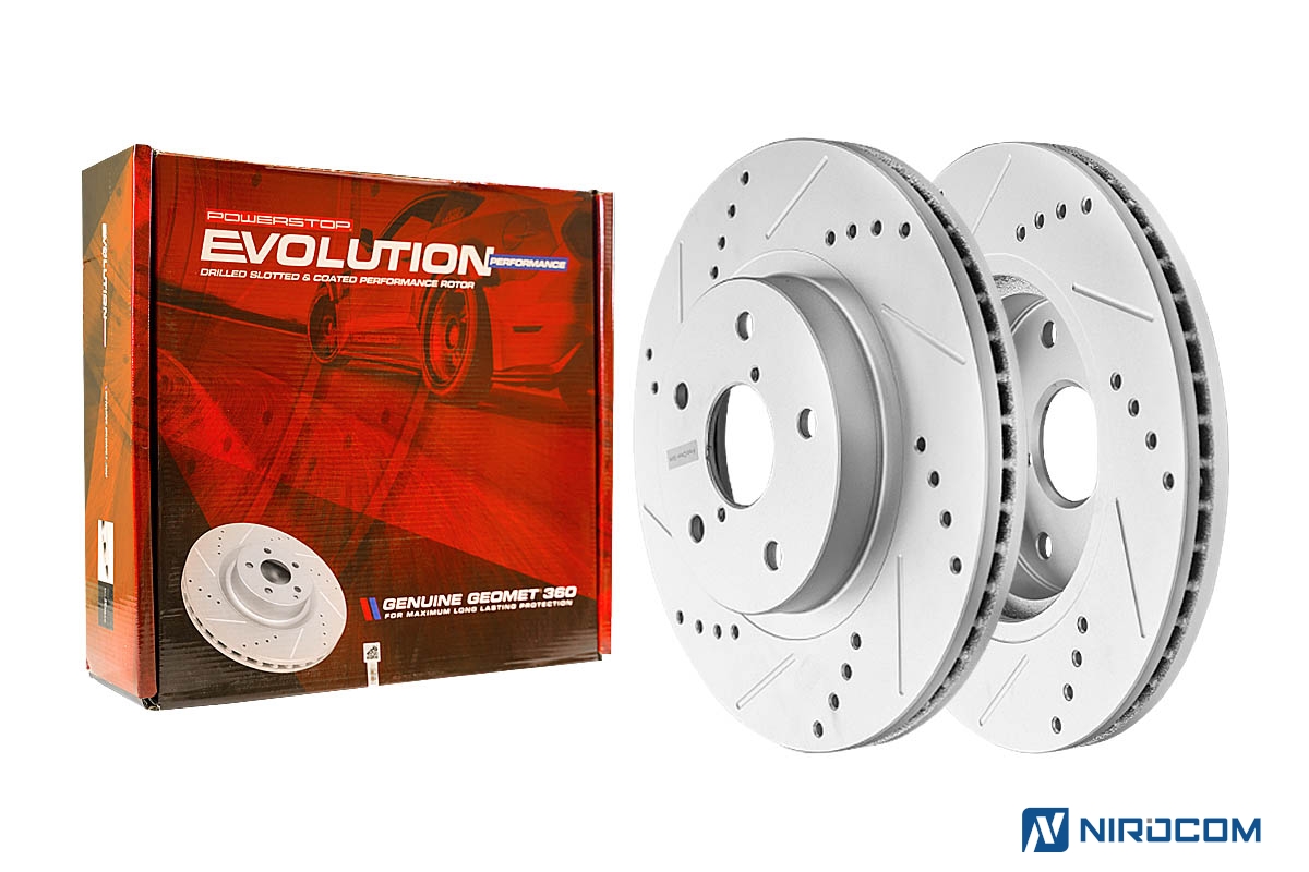 Тормозные диски PowerStop Evolution выполнены из чугуна с повышенным содержанием хрома и никеля. Слоты и перфорация служат как для охлаждения, так и для улучшения коэффициента трения и эффективной работы в различных внешних условиях. Лучшее решение для динамичной и спортивной манеры езды и несравнимая стойкость к перегреву. Все тормозные диски PowerStop Evolution спроектированы в полном соответствии с оригинальными размерами и спецификациями. Прецизионная лазерная чистовая обработка гарантирует их простую и быструю установку, а также безотказную работу на протяжении всего срока службы. Весь тормозной диск, включая внутренние лопасти покрыт запатентованным составом GEOMET® (смесь с использованием дихромата серебра и цинка) которое чрезвычайно стойко к окислению и коррозии, не влияя при этом на эффективность торможения.