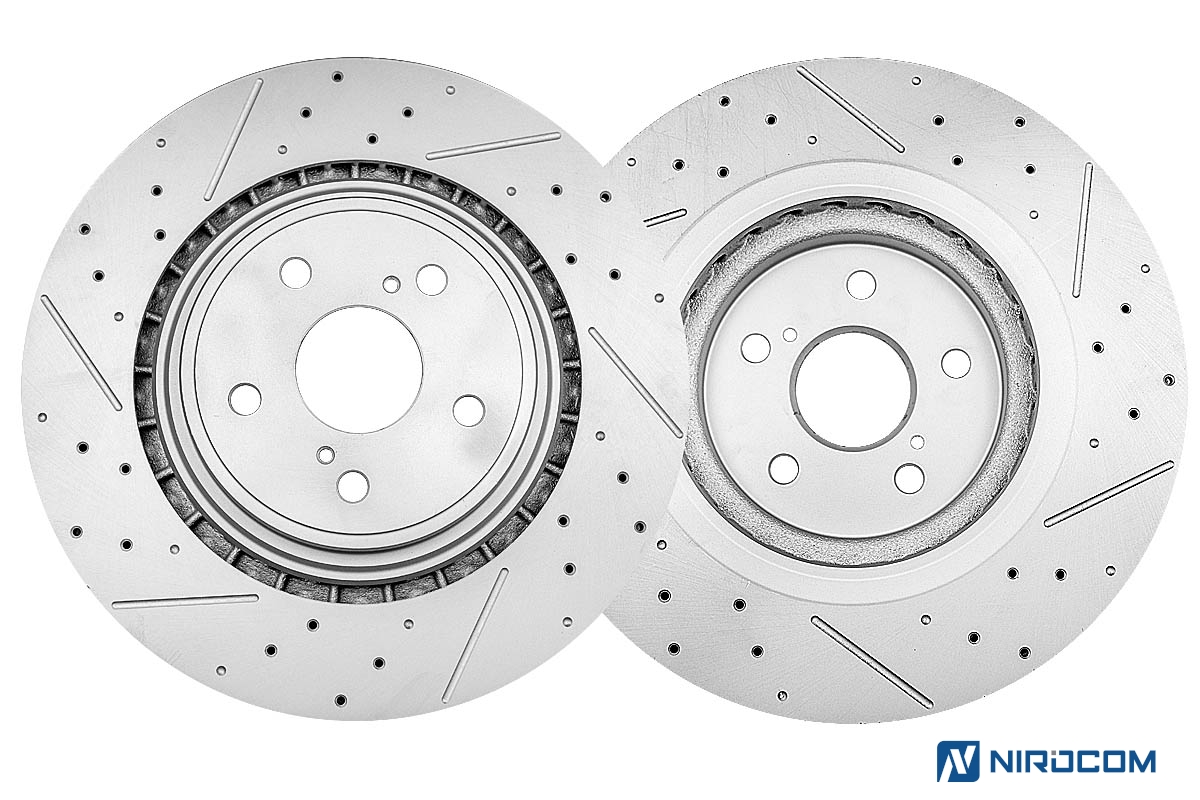 • характеристики тормозных дисков: потенциал рассеивания тепла может по-разному влиять на диски в зависимости от того, вентилированные они или нет, имеется ли перфорация, насечки;