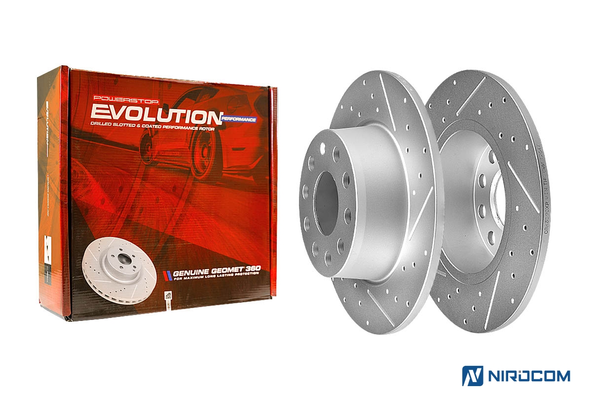 Тормозные диски PowerStop Evolution выполнены из чугуна с повышенным содержанием хрома и никеля. Слоты и перфорация служат как для охлаждения, так и для улучшения коэффициента трения и эффективной работы в различных внешних условиях. Лучшее решение для динамичной и спортивной манеры езды и несравнимая стойкость к перегреву. Все тормозные диски PowerStop Evolution спроектированы в полном соответствии с оригинальными размерами и спецификациями. Прецизионная лазерная чистовая обработка гарантирует их простую и быструю установку, а также безотказную работу на протяжении всего срока службы. Весь тормозной диск, включая внутренние лопасти покрыт запатентованным составом GEOMET® (смесь с использованием дихромата серебра и цинка) которое чрезвычайно стойко к окислению и коррозии, не влияя при этом на эффективность торможения.