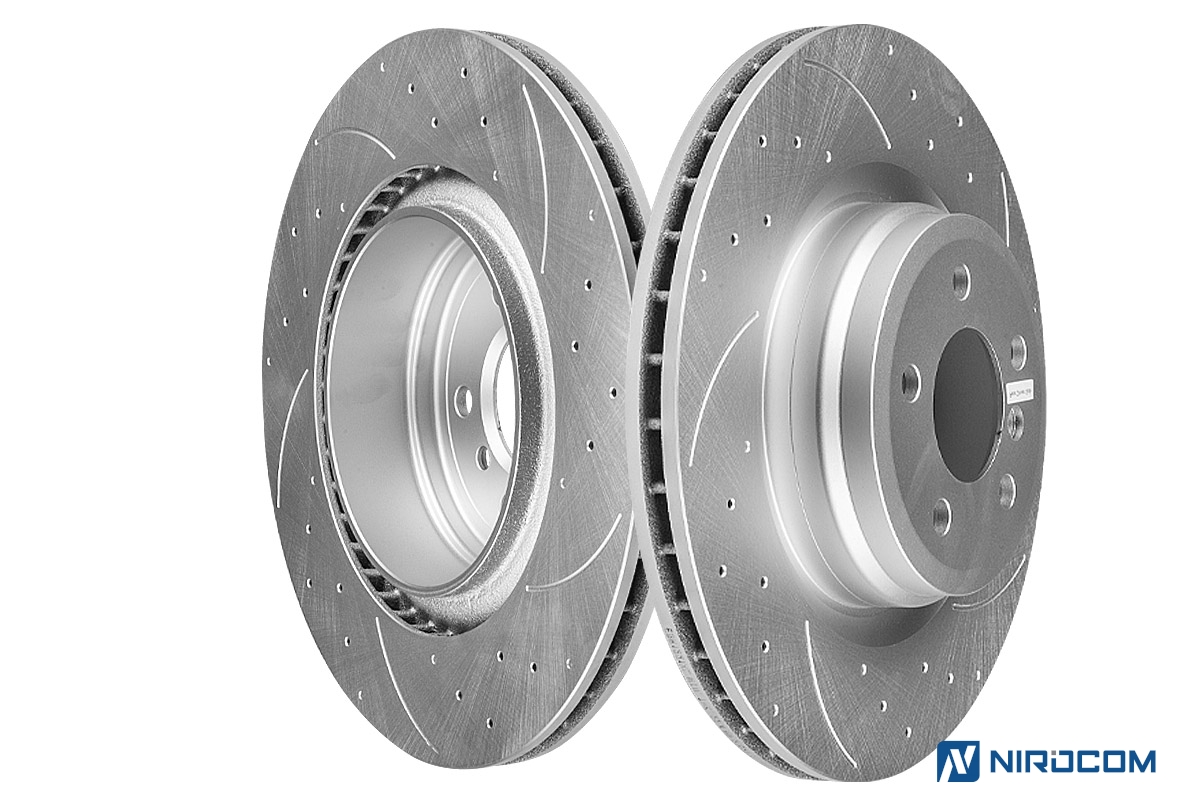 • характеристики тормозных дисков: потенциал рассеивания тепла может по-разному влиять на диски в зависимости от того, вентилированные они или нет, имеется ли перфорация, насечки;