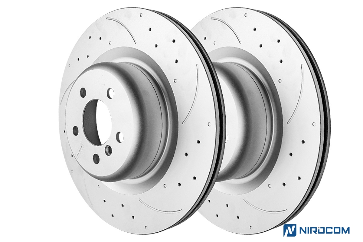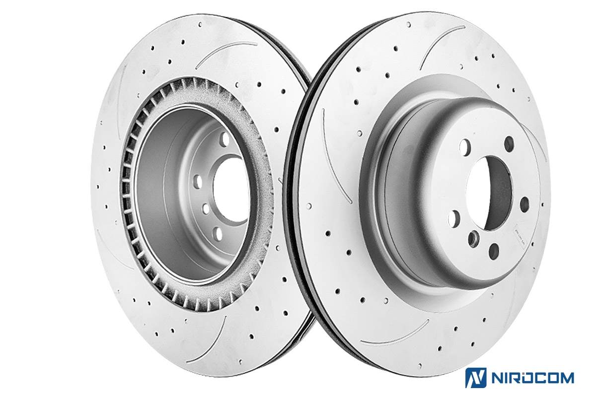 • характеристики тормозных дисков: потенциал рассеивания тепла может по-разному влиять на диски в зависимости от того, вентилированные они или нет, имеется ли перфорация, насечки;