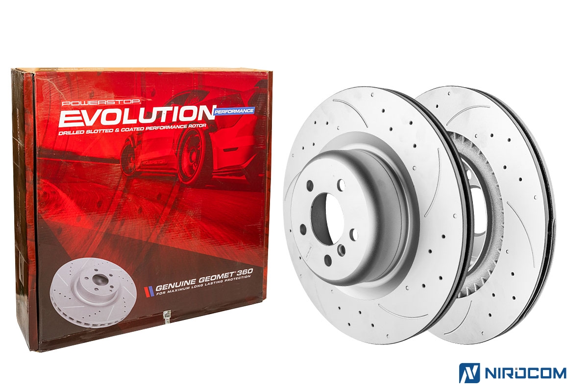 Тормозные диски PowerStop Evolution выполнены из чугуна с повышенным содержанием хрома и никеля. Слоты и перфорация служат как для охлаждения, так и для улучшения коэффициента трения и эффективной работы в различных внешних условиях. Лучшее решение для динамичной и спортивной манеры езды и несравнимая стойкость к перегреву. Все тормозные диски PowerStop Evolution спроектированы в полном соответствии с оригинальными размерами и спецификациями. Прецизионная лазерная чистовая обработка гарантирует их простую и быструю установку, а также безотказную работу на протяжении всего срока службы. Весь тормозной диск, включая внутренние лопасти покрыт запатентованным составом GEOMET® (смесь с использованием дихромата серебра и цинка) которое чрезвычайно стойко к окислению и коррозии, не влияя при этом на эффективность торможения.