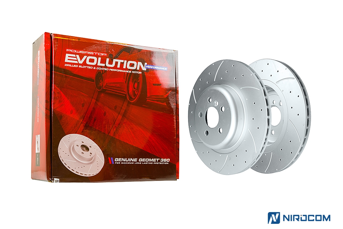 Тормозные диски PowerStop Evolution выполнены из чугуна с повышенным содержанием хрома и никеля. Слоты и перфорация служат как для охлаждения, так и для улучшения коэффициента трения и эффективной работы в различных внешних условиях. Лучшее решение для динамичной и спортивной манеры езды и несравнимая стойкость к перегреву. Все тормозные диски PowerStop Evolution спроектированы в полном соответствии с оригинальными размерами и спецификациями. Прецизионная лазерная чистовая обработка гарантирует их простую и быструю установку, а также безотказную работу на протяжении всего срока службы. Весь тормозной диск, включая внутренние лопасти покрыт запатентованным составом GEOMET® (смесь с использованием дихромата серебра и цинка) которое чрезвычайно стойко к окислению и коррозии, не влияя при этом на эффективность торможения.