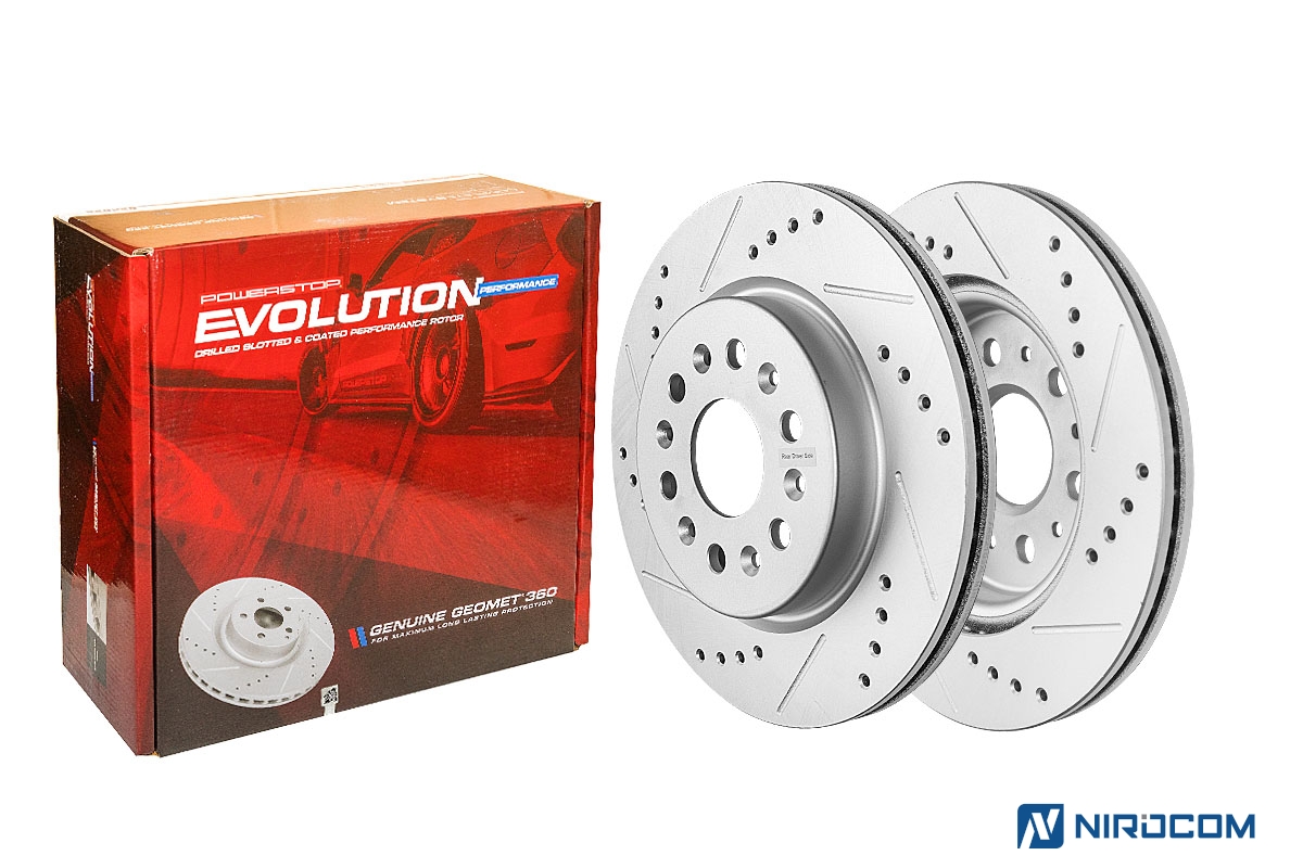 Тормозные диски PowerStop Evolution выполнены из чугуна с повышенным содержанием хрома и никеля. Слоты и перфорация служат как для охлаждения, так и для улучшения коэффициента трения и эффективной работы в различных внешних условиях. Лучшее решение для динамичной и спортивной манеры езды и несравнимая стойкость к перегреву. Все тормозные диски PowerStop Evolution спроектированы в полном соответствии с оригинальными размерами и спецификациями. Прецизионная лазерная чистовая обработка гарантирует их простую и быструю установку, а также безотказную работу на протяжении всего срока службы. Весь тормозной диск, включая внутренние лопасти покрыт запатентованным составом GEOMET® (смесь с использованием дихромата серебра и цинка) которое чрезвычайно стойко к окислению и коррозии, не влияя при этом на эффективность торможения.