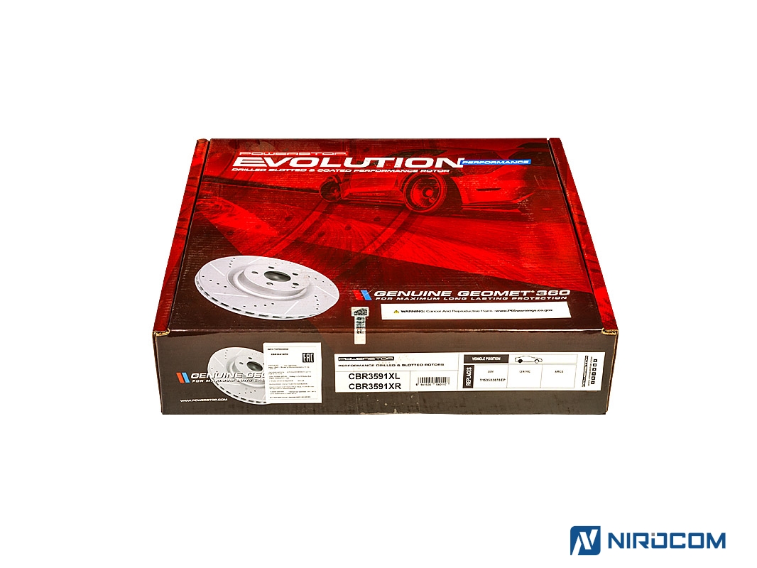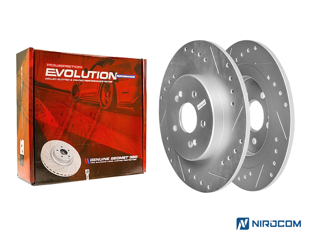 Тормозные диски PowerStop Evolution выполнены из чугуна с повышенным содержанием хрома и никеля. Слоты и перфорация служат как для охлаждения, так и для улучшения коэффициента трения и эффективной работы в различных внешних условиях. Лучшее решение для динамичной и спортивной манеры езды и несравнимая стойкость к перегреву. Все тормозные диски PowerStop Evolution спроектированы в полном соответствии с оригинальными размерами и спецификациями. Прецизионная лазерная чистовая обработка гарантирует их простую и быструю установку, а также безотказную работу на протяжении всего срока службы. Весь тормозной диск, включая внутренние лопасти покрыт запатентованным составом GEOMET® (смесь с использованием дихромата серебра и цинка) которое чрезвычайно стойко к окислению и коррозии, не влияя при этом на эффективность торможения.