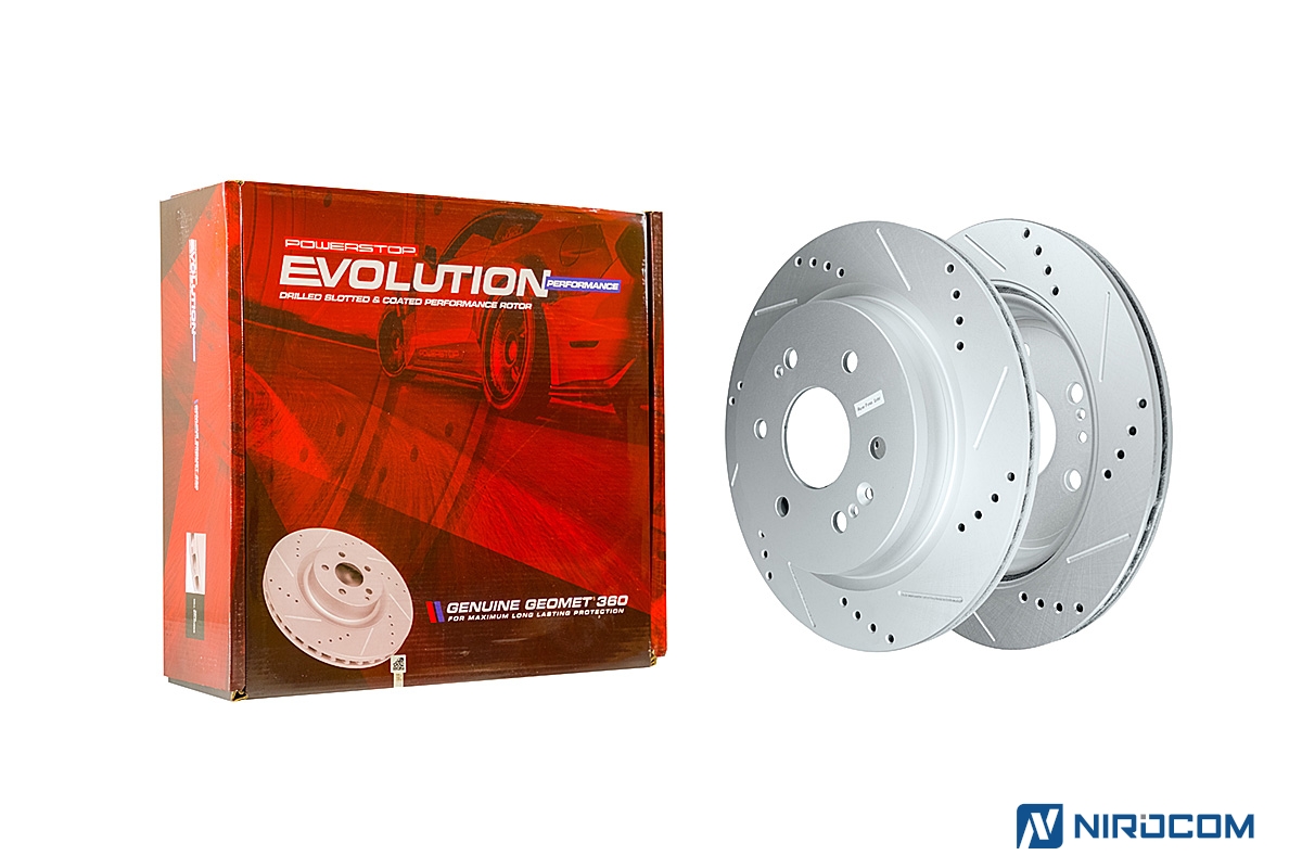 Тормозные диски PowerStop Evolution выполнены из чугуна с повышенным содержанием хрома и никеля. Слоты и перфорация служат как для охлаждения, так и для улучшения коэффициента трения и эффективной работы в различных внешних условиях. Лучшее решение для динамичной и спортивной манеры езды и несравнимая стойкость к перегреву. Все тормозные диски PowerStop Evolution спроектированы в полном соответствии с оригинальными размерами и спецификациями. Прецизионная лазерная чистовая обработка гарантирует их простую и быструю установку, а также безотказную работу на протяжении всего срока службы. Весь тормозной диск, включая внутренние лопасти покрыт запатентованным составом GEOMET® (смесь с использованием дихромата серебра и цинка) которое чрезвычайно стойко к окислению и коррозии, не влияя при этом на эффективность торможения.