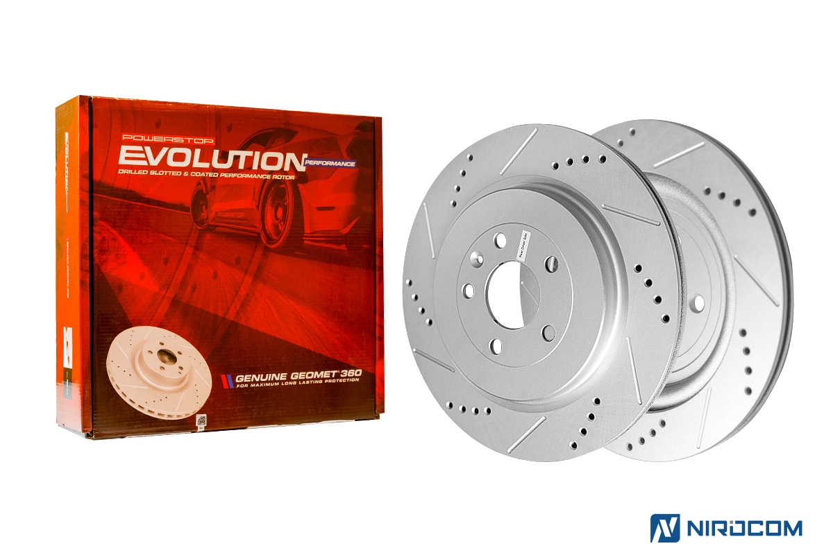 Тормозные диски PowerStop Evolution выполнены из чугуна с повышенным содержанием хрома и никеля. Слоты и перфорация служат как для охлаждения, так и для улучшения коэффициента трения и эффективной работы в различных внешних условиях. Лучшее решение для динамичной и спортивной манеры езды и несравнимая стойкость к перегреву. Все тормозные диски PowerStop Evolution спроектированы в полном соответствии с оригинальными размерами и спецификациями. Прецизионная лазерная чистовая обработка гарантирует их простую и быструю установку, а также безотказную работу на протяжении всего срока службы. Весь тормозной диск, включая внутренние лопасти покрыт запатентованным составом GEOMET® (смесь с использованием дихромата серебра и цинка) которое чрезвычайно стойко к окислению и коррозии, не влияя при этом на эффективность торможения.