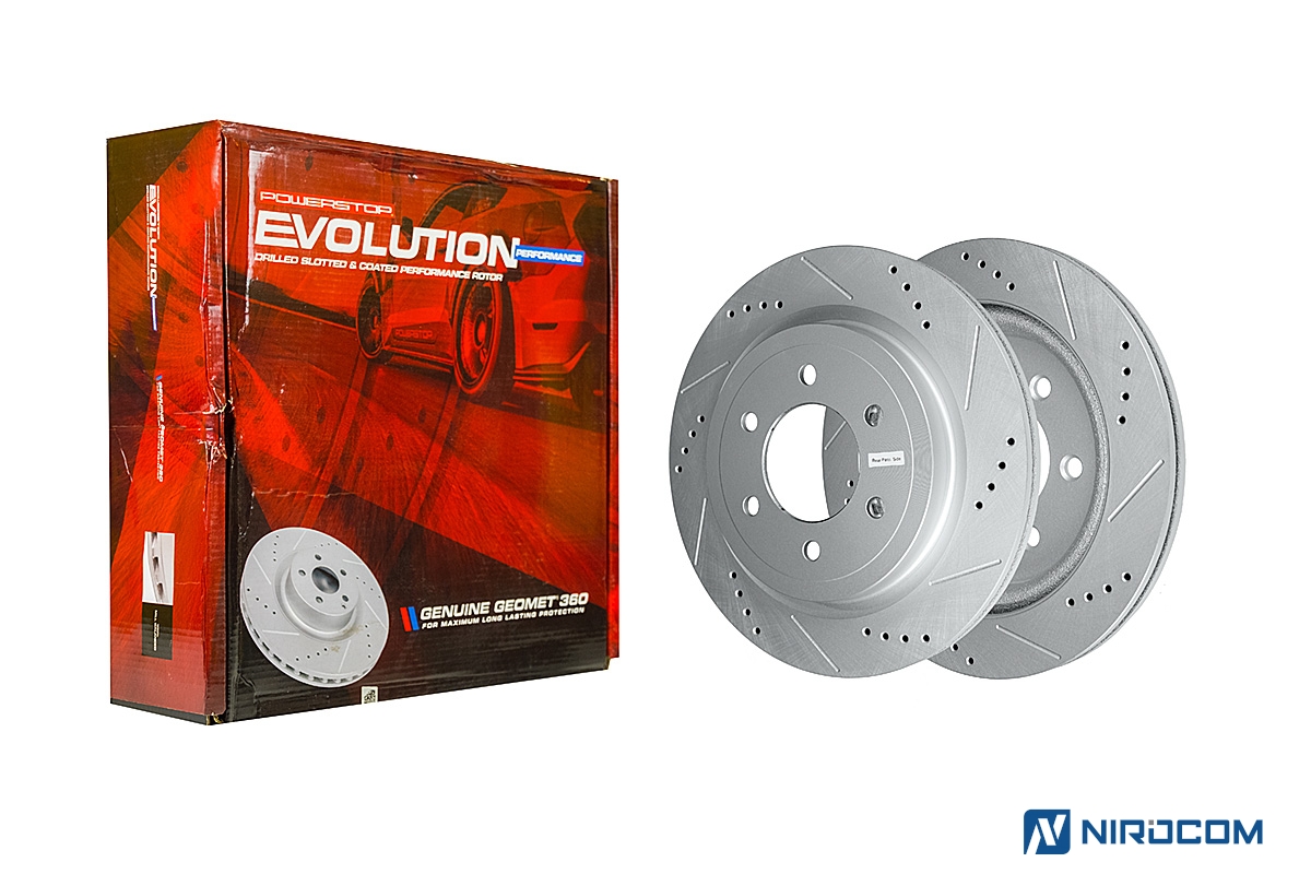 Тормозные диски PowerStop Evolution выполнены из чугуна с повышенным содержанием хрома и никеля. Слоты и перфорация служат как для охлаждения, так и для улучшения коэффициента трения и эффективной работы в различных внешних условиях. Лучшее решение для динамичной и спортивной манеры езды и несравнимая стойкость к перегреву. Все тормозные диски PowerStop Evolution спроектированы в полном соответствии с оригинальными размерами и спецификациями. Прецизионная лазерная чистовая обработка гарантирует их простую и быструю установку, а также безотказную работу на протяжении всего срока службы. Весь тормозной диск, включая внутренние лопасти покрыт запатентованным составом GEOMET® (смесь с использованием дихромата серебра и цинка) которое чрезвычайно стойко к окислению и коррозии, не влияя при этом на эффективность торможения.