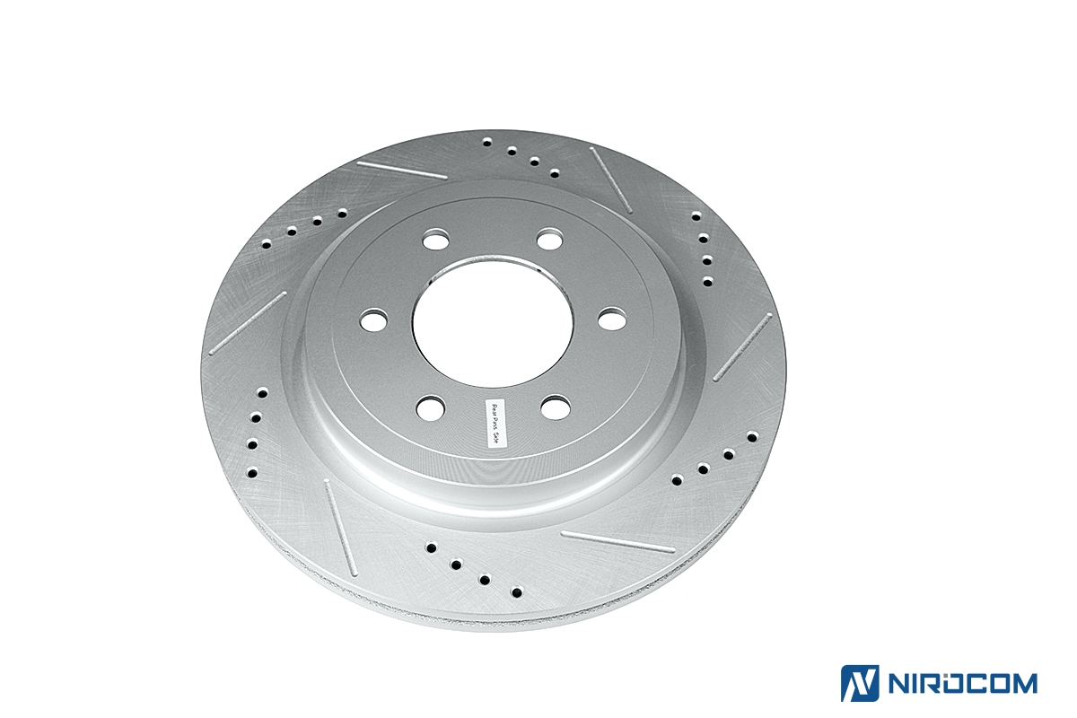 Выполнять шлифовку или проточки дисков с перфорацией и насечками можно. Для этого скорость вращения шпинделя токарного станка должна быть минимальной. При каждой замене тормозных колодок следует также выполнять замену или проточку диска для обеспечения правильного прилегания колодок. Однако, чтобы получить диск с ненаправленной поперечной обработкой поверхности, лучше всего приобрести новый комплект дисков «PowerStop». Скорее всего, это будет стоить примерно столько же, а может и меньше, чем проточка дисков.
