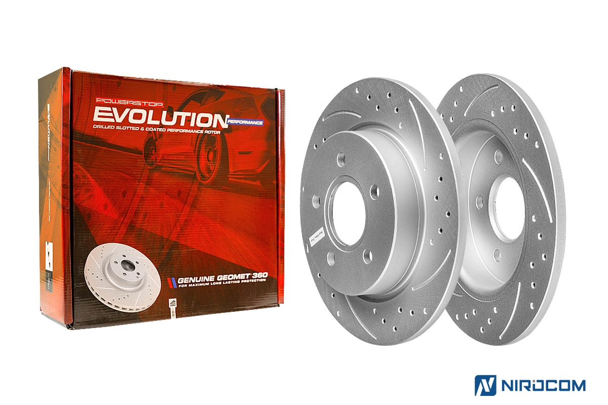 Тормозные диски PowerStop Evolution выполнены из чугуна с повышенным содержанием хрома и никеля. Слоты и перфорация служат как для охлаждения, так и для улучшения коэффициента трения и эффективной работы в различных внешних условиях. Лучшее решение для динамичной и спортивной манеры езды и несравнимая стойкость к перегреву. Все тормозные диски PowerStop Evolution спроектированы в полном соответствии с оригинальными размерами и спецификациями. Прецизионная лазерная чистовая обработка гарантирует их простую и быструю установку, а также безотказную работу на протяжении всего срока службы. Весь тормозной диск, включая внутренние лопасти покрыт запатентованным составом GEOMET® (смесь с использованием дихромата серебра и цинка) которое чрезвычайно стойко к окислению и коррозии, не влияя при этом на эффективность торможения.