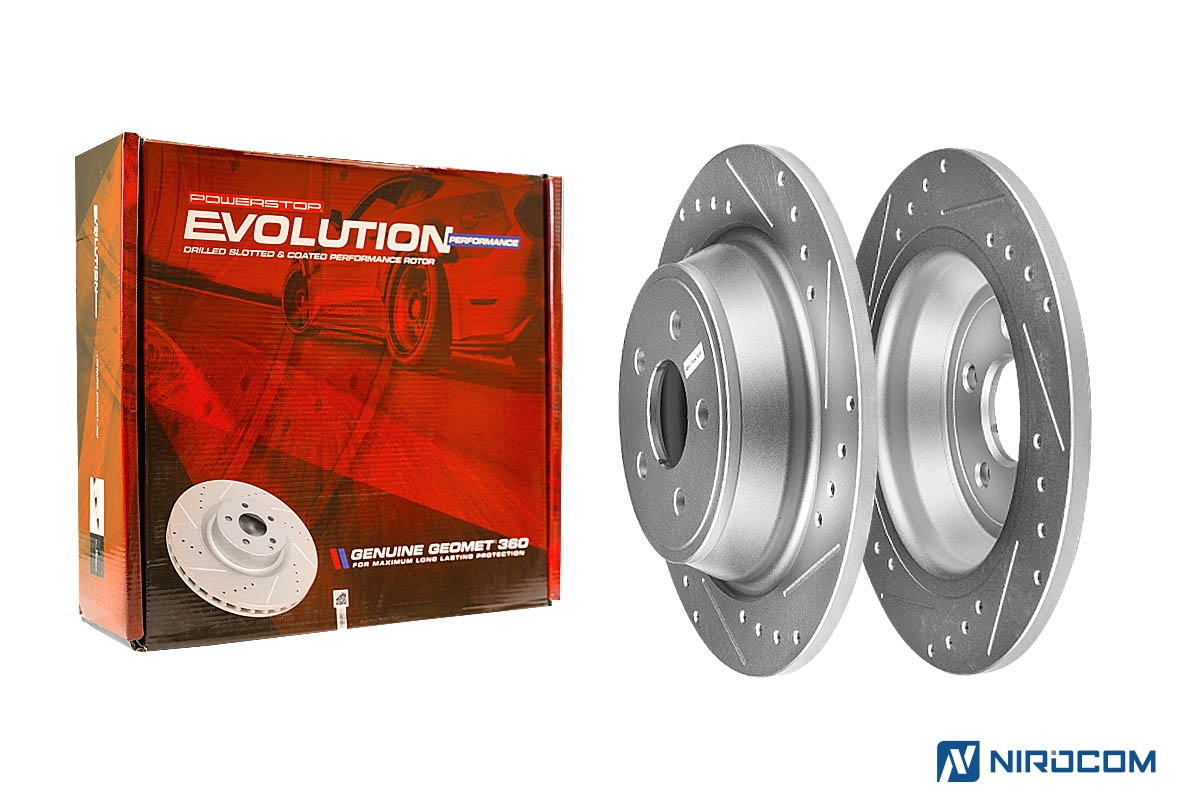 Тормозные диски PowerStop Evolution выполнены из чугуна с повышенным содержанием хрома и никеля. Слоты и перфорация служат как для охлаждения, так и для улучшения коэффициента трения и эффективной работы в различных внешних условиях. Лучшее решение для динамичной и спортивной манеры езды и несравнимая стойкость к перегреву. Все тормозные диски PowerStop Evolution спроектированы в полном соответствии с оригинальными размерами и спецификациями. Прецизионная лазерная чистовая обработка гарантирует их простую и быструю установку, а также безотказную работу на протяжении всего срока службы. Весь тормозной диск, включая внутренние лопасти покрыт запатентованным составом GEOMET® (смесь с использованием дихромата серебра и цинка) которое чрезвычайно стойко к окислению и коррозии, не влияя при этом на эффективность торможения.