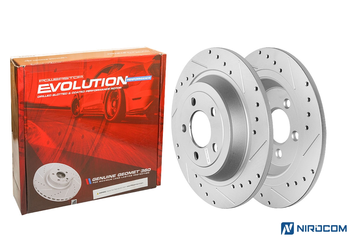 Тормозные диски PowerStop Evolution выполнены из чугуна с повышенным содержанием хрома и никеля. Слоты и перфорация служат как для охлаждения, так и для улучшения коэффициента трения и эффективной работы в различных внешних условиях. Лучшее решение для динамичной и спортивной манеры езды и несравнимая стойкость к перегреву. Все тормозные диски PowerStop Evolution спроектированы в полном соответствии с оригинальными размерами и спецификациями. Прецизионная лазерная чистовая обработка гарантирует их простую и быструю установку, а также безотказную работу на протяжении всего срока службы. Весь тормозной диск, включая внутренние лопасти покрыт запатентованным составом GEOMET® (смесь с использованием дихромата серебра и цинка) которое чрезвычайно стойко к окислению и коррозии, не влияя при этом на эффективность торможения.