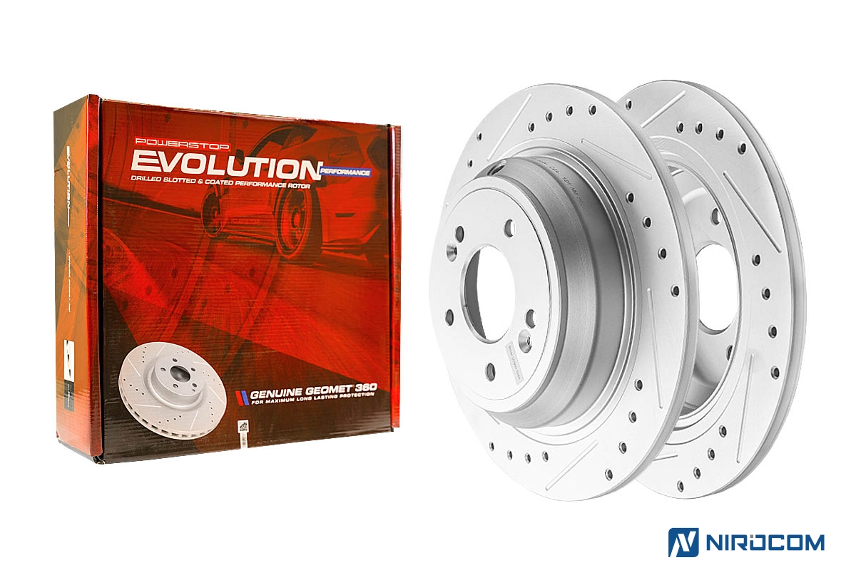 Тормозные диски PowerStop Evolution выполнены из чугуна с повышенным содержанием хрома и никеля. Слоты и перфорация служат как для охлаждения, так и для улучшения коэффициента трения и эффективной работы в различных внешних условиях. Лучшее решение для динамичной и спортивной манеры езды и несравнимая стойкость к перегреву. Все тормозные диски PowerStop Evolution спроектированы в полном соответствии с оригинальными размерами и спецификациями. Прецизионная лазерная чистовая обработка гарантирует их простую и быструю установку, а также безотказную работу на протяжении всего срока службы. Весь тормозной диск, включая внутренние лопасти покрыт запатентованным составом GEOMET® (смесь с использованием дихромата серебра и цинка) которое чрезвычайно стойко к окислению и коррозии, не влияя при этом на эффективность торможения.
