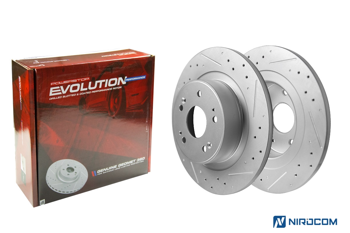 Тормозные диски PowerStop Evolution выполнены из чугуна с повышенным содержанием хрома и никеля. Слоты и перфорация служат как для охлаждения, так и для улучшения коэффициента трения и эффективной работы в различных внешних условиях. Лучшее решение для динамичной и спортивной манеры езды и несравнимая стойкость к перегреву. Все тормозные диски PowerStop Evolution спроектированы в полном соответствии с оригинальными размерами и спецификациями. Прецизионная лазерная чистовая обработка гарантирует их простую и быструю установку, а также безотказную работу на протяжении всего срока службы. Весь тормозной диск, включая внутренние лопасти покрыт запатентованным составом GEOMET® (смесь с использованием дихромата серебра и цинка) которое чрезвычайно стойко к окислению и коррозии, не влияя при этом на эффективность торможения.