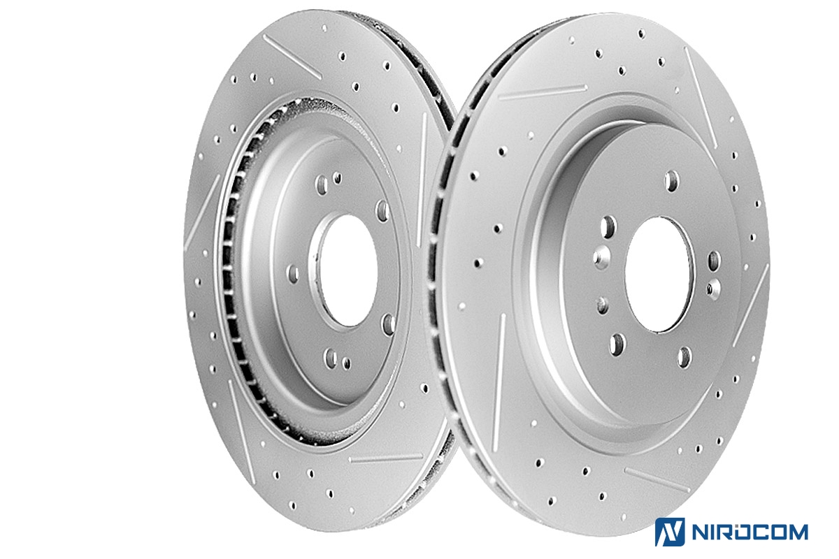 • характеристики тормозных дисков: потенциал рассеивания тепла может по-разному влиять на диски в зависимости от того, вентилированные они или нет, имеется ли перфорация, насечки;