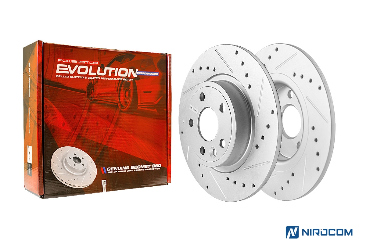 Тормозные диски PowerStop Evolution выполнены из чугуна с повышенным содержанием хрома и никеля. Слоты и перфорация служат как для охлаждения, так и для улучшения коэффициента трения и эффективной работы в различных внешних условиях. Лучшее решение для динамичной и спортивной манеры езды и несравнимая стойкость к перегреву. Все тормозные диски PowerStop Evolution спроектированы в полном соответствии с оригинальными размерами и спецификациями. Прецизионная лазерная чистовая обработка гарантирует их простую и быструю установку, а также безотказную работу на протяжении всего срока службы. Весь тормозной диск, включая внутренние лопасти покрыт запатентованным составом GEOMET® (смесь с использованием дихромата серебра и цинка) которое чрезвычайно стойко к окислению и коррозии, не влияя при этом на эффективность торможения.
